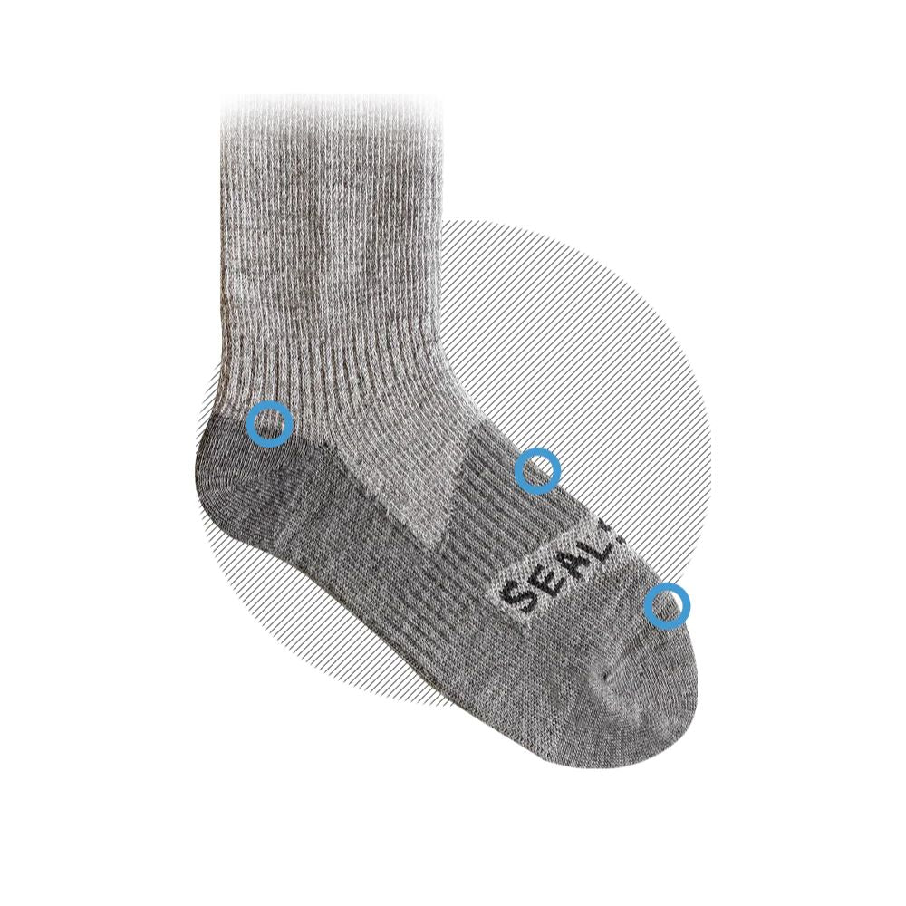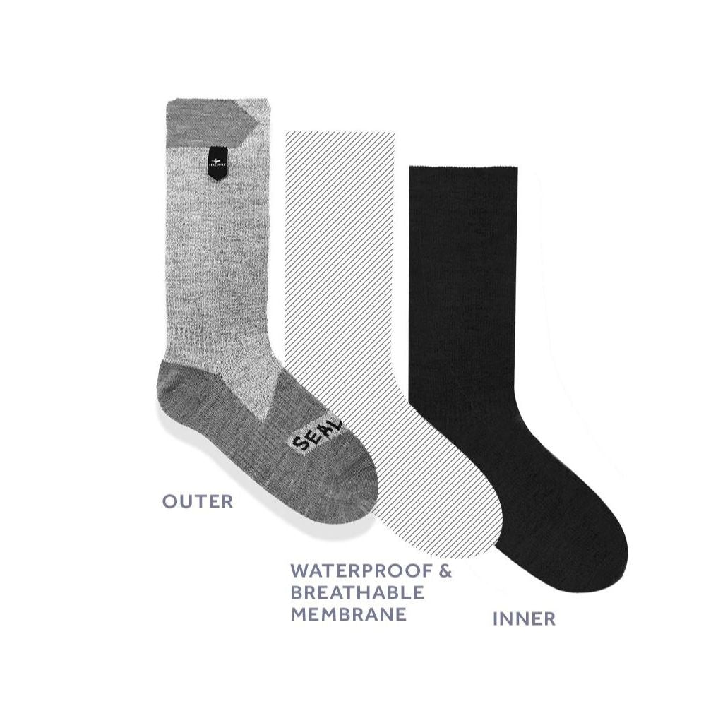Our socks feature a three-layer bonded construction that includes a 100% waterproof hydrophilic membrane, premium Merino wool for warmth and moisture-wicking, and a durable exterior with 4-way stretch for optimal fit. This combination ensures maximum comfort and performance.